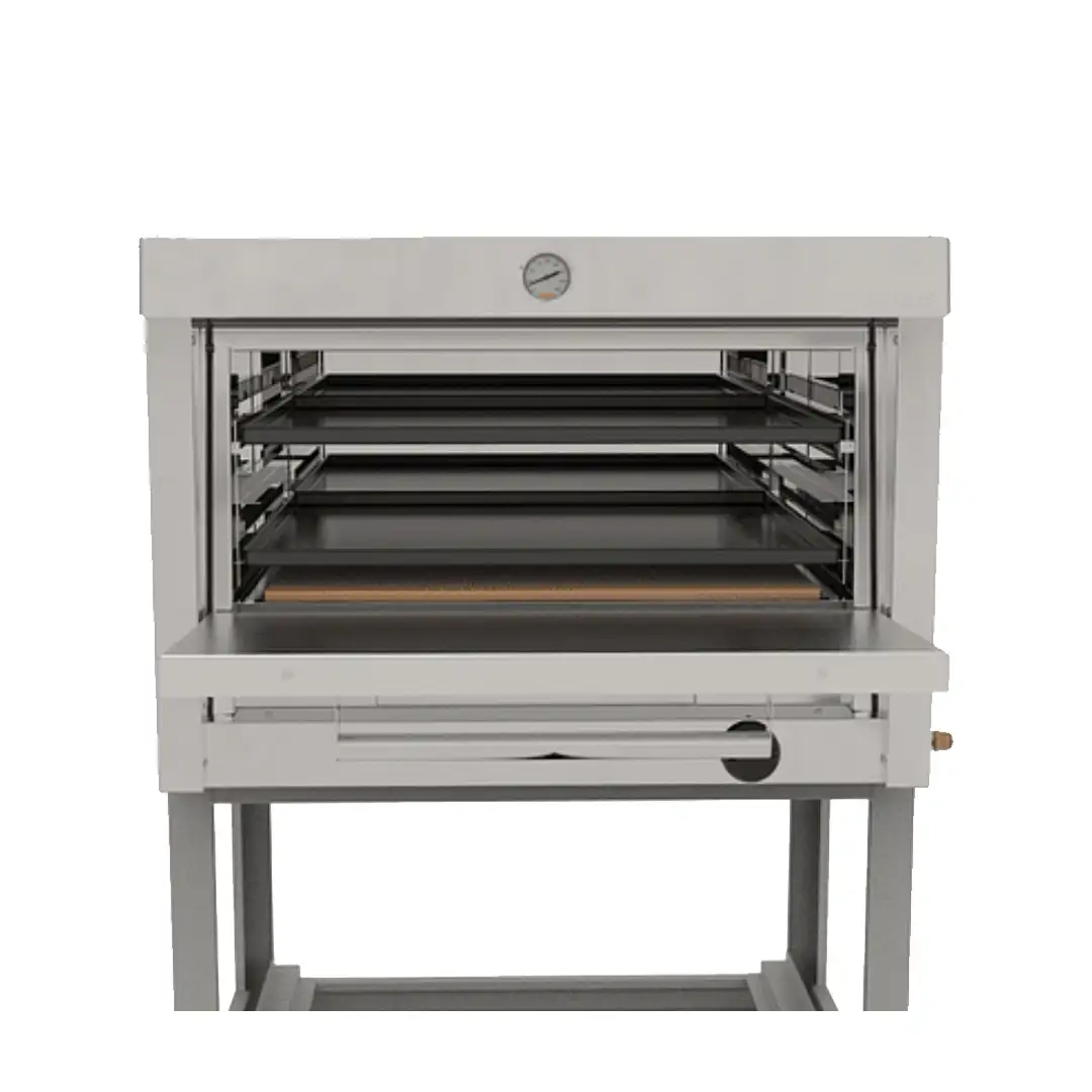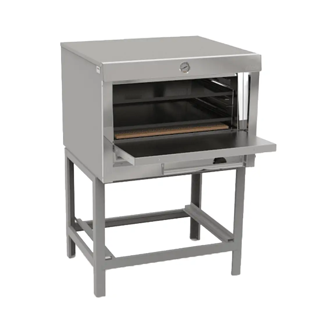 La cámara del horno industrial está fabricada completamente con acero inoxidable, además incorpora ladrillos refractarios para homogeneizar temperatura de cocción.